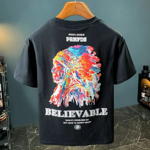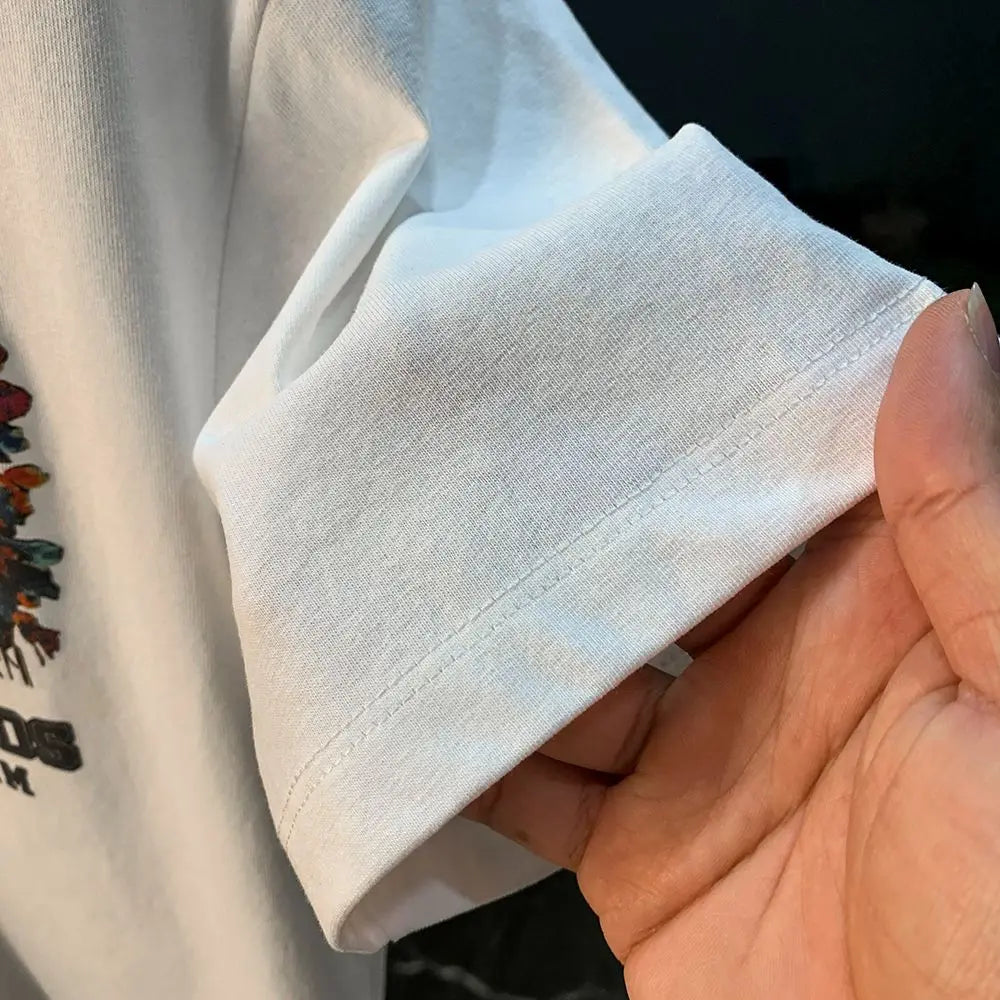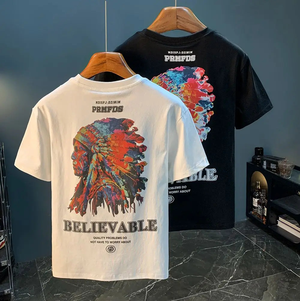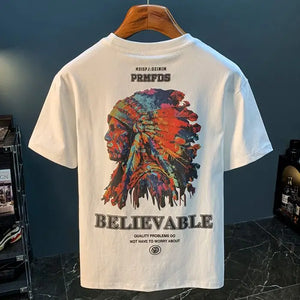 This oversized tee brings serious energy with a standout Indian-inspired print, elevated by textured 3D embroidery. Built from 100% cotton with a midweight 220GSM feel, it’s breathable enough for daily wear but structured enough to keep its shape. The relaxed fit, short sleeves, and round neck make it an easy go-to for any look that needs a little soul and a lot of comfort.