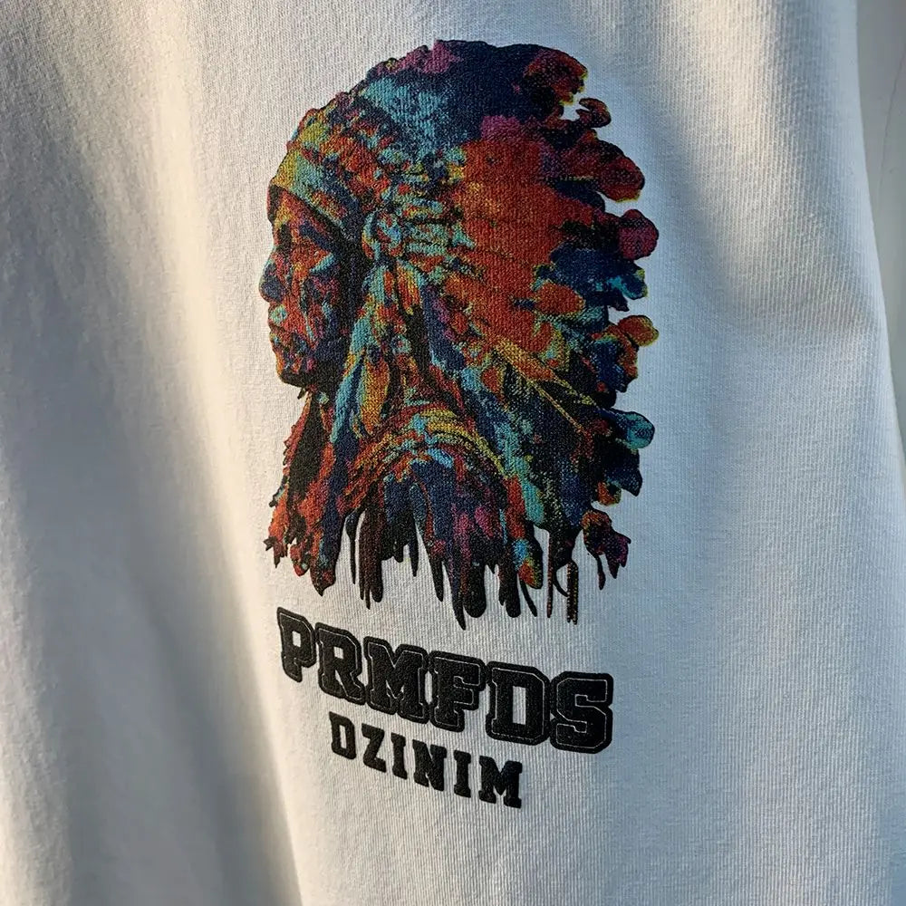Oversized Cotton Tee with 3D Embroidered Indian-Inspired Print