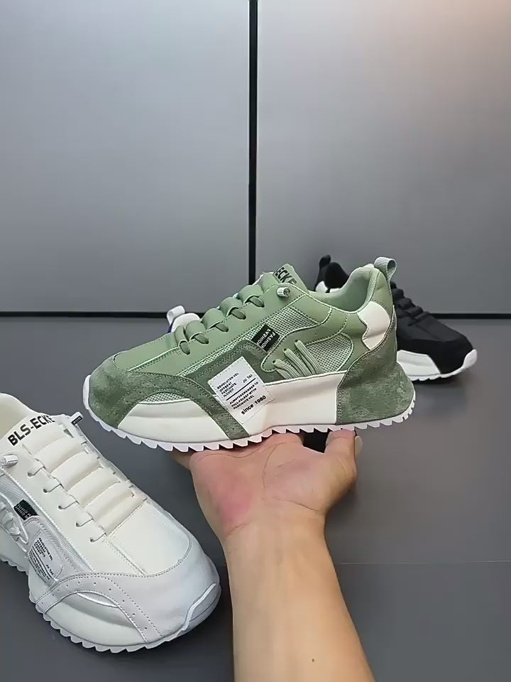 Hit the pavement with confidence in these Men’s Running Sneakers for Autumn, versatile shoes crafted for all-season performance. Featuring a soft PU upper and breathable mesh lining, these lace-up sneakers offer a round toe design for natural comfort during runs, walks, or casual wear. The hard-wearing PVC outsole provides anti-slippery traction, while the EVA midsole ensures cushioned support for long days. Perfect for sporty lifestyles, these fashion-trend sneakers blend style and durability, making them ideal for autumn trails, winter jogs, spring hikes, or summer strolls. Step into effortless comfort and reliability with this must-have pair for active men.