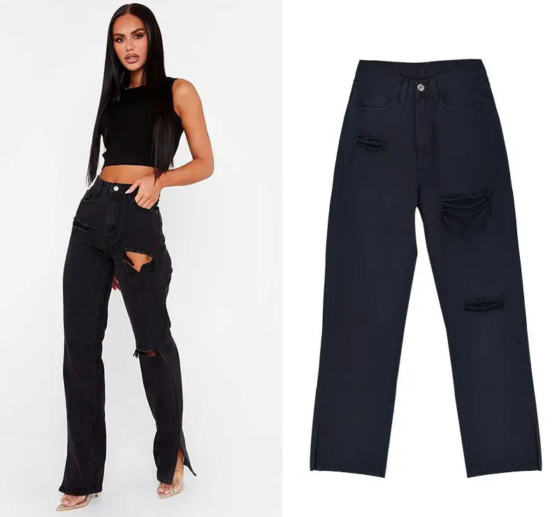 Women’s High-Waist Straight-Leg Ripped Denim Jeans