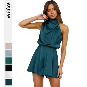 Lady Satin Rompers 2024 Streetwear Black One Piece White Jumpsuit Women Elegant