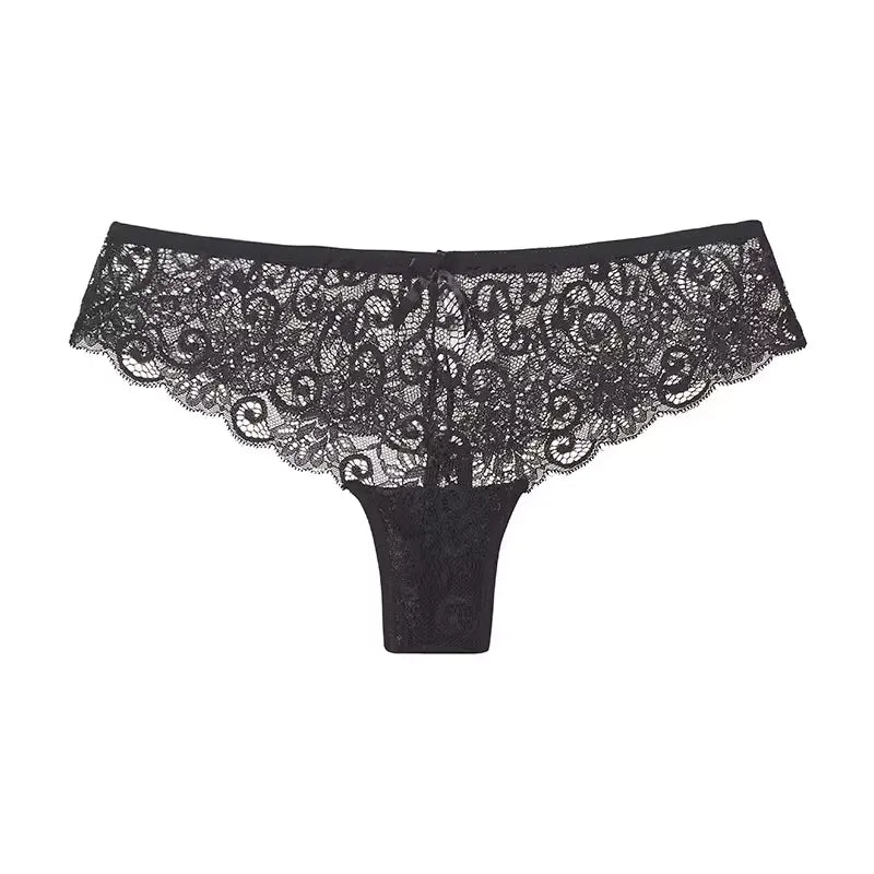 Low waist T-back upscale transparent lace openwork underwear girls triangle cotton crotch thong