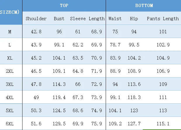 S, M, L, XL, 2XL, 3XL, 4XL, 5XL, 6XL |