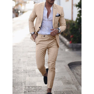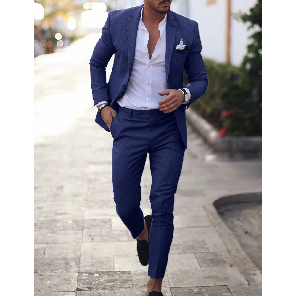 - Single-breasted jacket with zipper-fly pants for a modern look