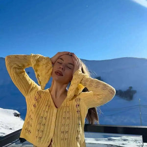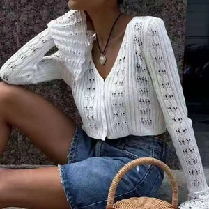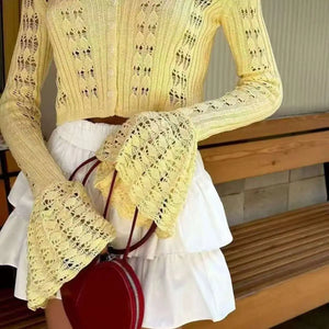 Step into effortless style with this vintage-inspired flare sleeve pullover. Designed with a flattering V-neckline and lightweight knit, it’s the perfect blend of breathable comfort and chic detail. The flared sleeves add a touch of drama to a simple silhouette, making this sweater a standout piece for your wardrobe.