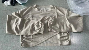 - Design: Casual 2-piece set with crop top and jogger pants