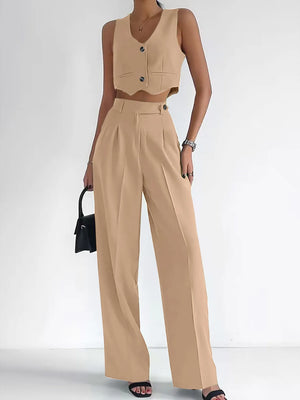 Autumn Elegance Awaits! Slip into this chic vest set for timeless style. Order now and shine this fall season!