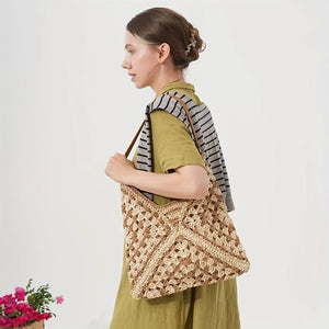 Elevate your style with this Women’s Handmade Straw Woven Tote Bag, a perfect blend of fashion and function. Crafted from eco-friendly paper straw, this chic tote features a unique thread pattern and a secure magnetic button closure. Its spacious, casual design makes it ideal for beach days, picnics, or everyday errands. Lightweight and durable, this bag adds a touch of artisanal charm to any outfit, letting you carry your essentials with effortless elegance.