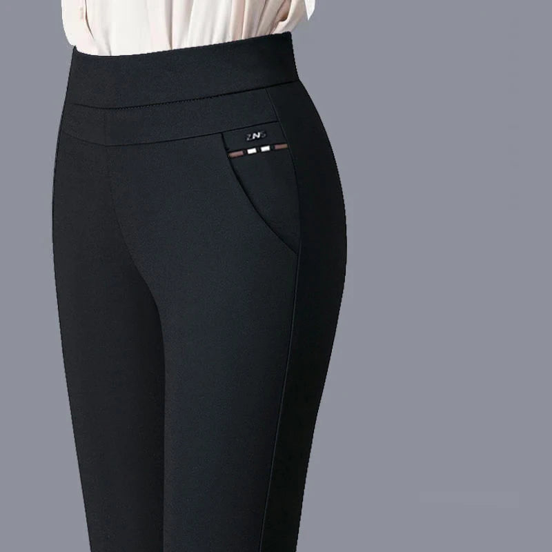 - High-waist, pencil pant design for a sleek, professional silhouette