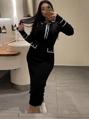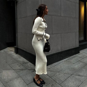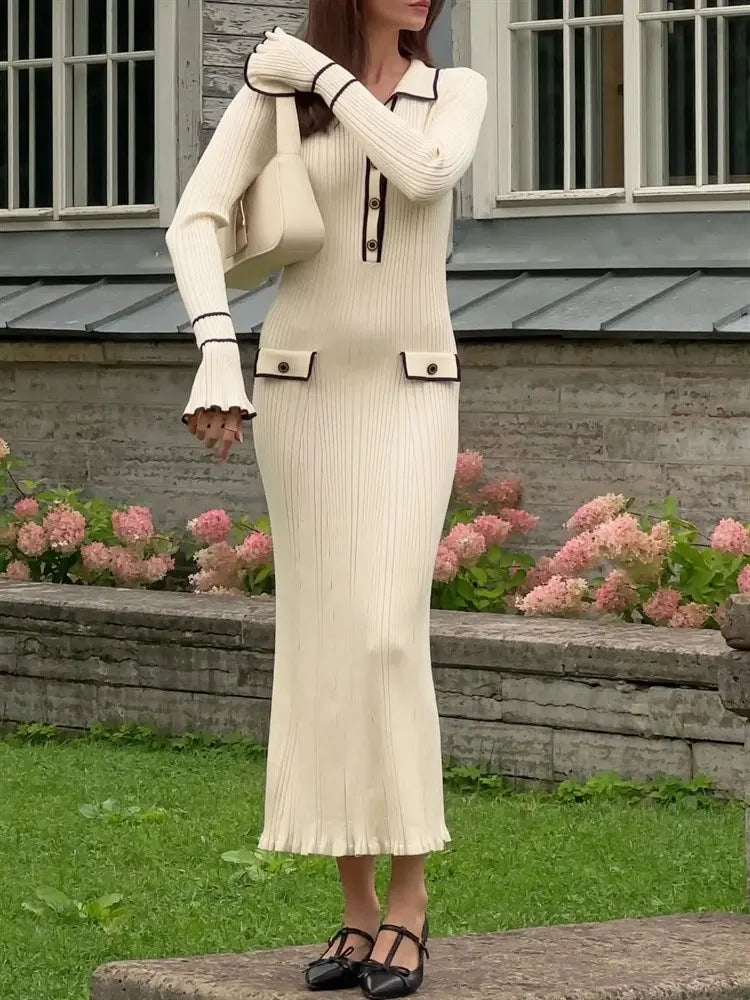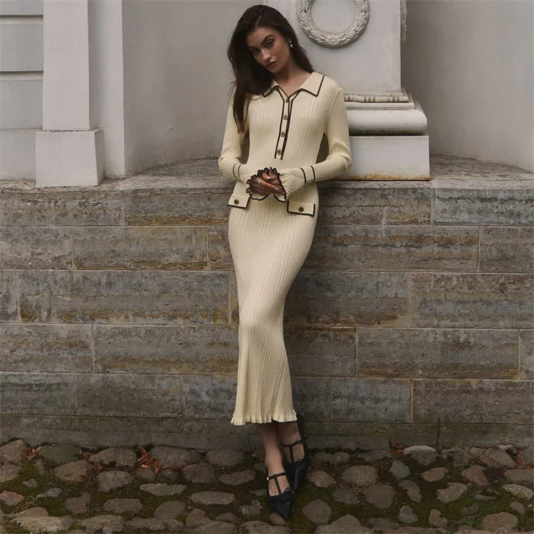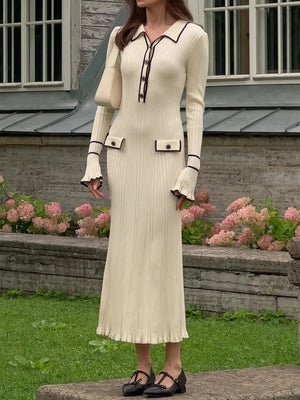 Elevate your wardrobe with this effortlessly chic long-sleeve knit dress, designed to flatter your figure and keep you comfortable all day. Crafted from a soft, stretchy blend of spandex and polyester, this bodycon dress hugs your curves with a sleek silhouette and an empire waistline that accentuates your natural shape. Perfect for autumn and winter, its breathable, anti-wrinkle fabric ensures you stay polished and cozy, whether you're heading to a casual brunch or a cozy evening out.
