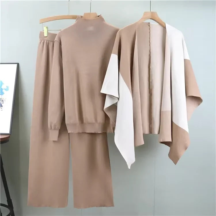 Women’s Three-Piece Knitted Cardigan and Wide-Leg Pants Set