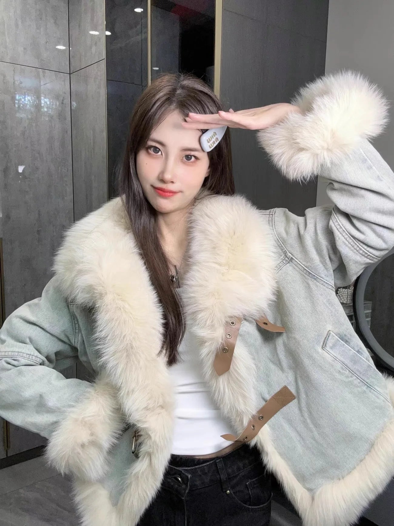 Elevate your winter wardrobe with this Women’s Winter Denim Coat, a stylish short jacket that blends warmth and sophistication. Crafted from a woven denim and cotton clip blend with a cozy wool lining, this breathable, waterproof coat keeps you comfortable in chilly weather. The detachable fur turn-down collar and adjustable belt add a chic, customizable touch, while the full-length sleeves and practical pockets enhance functionality. Perfect for office wear or casual outings, its solid pattern and plain-dyed finish offer timeless elegance for the modern woman. Layer up in style with this versatile, fleece-lined jacket designed for all-day comfort and flair.