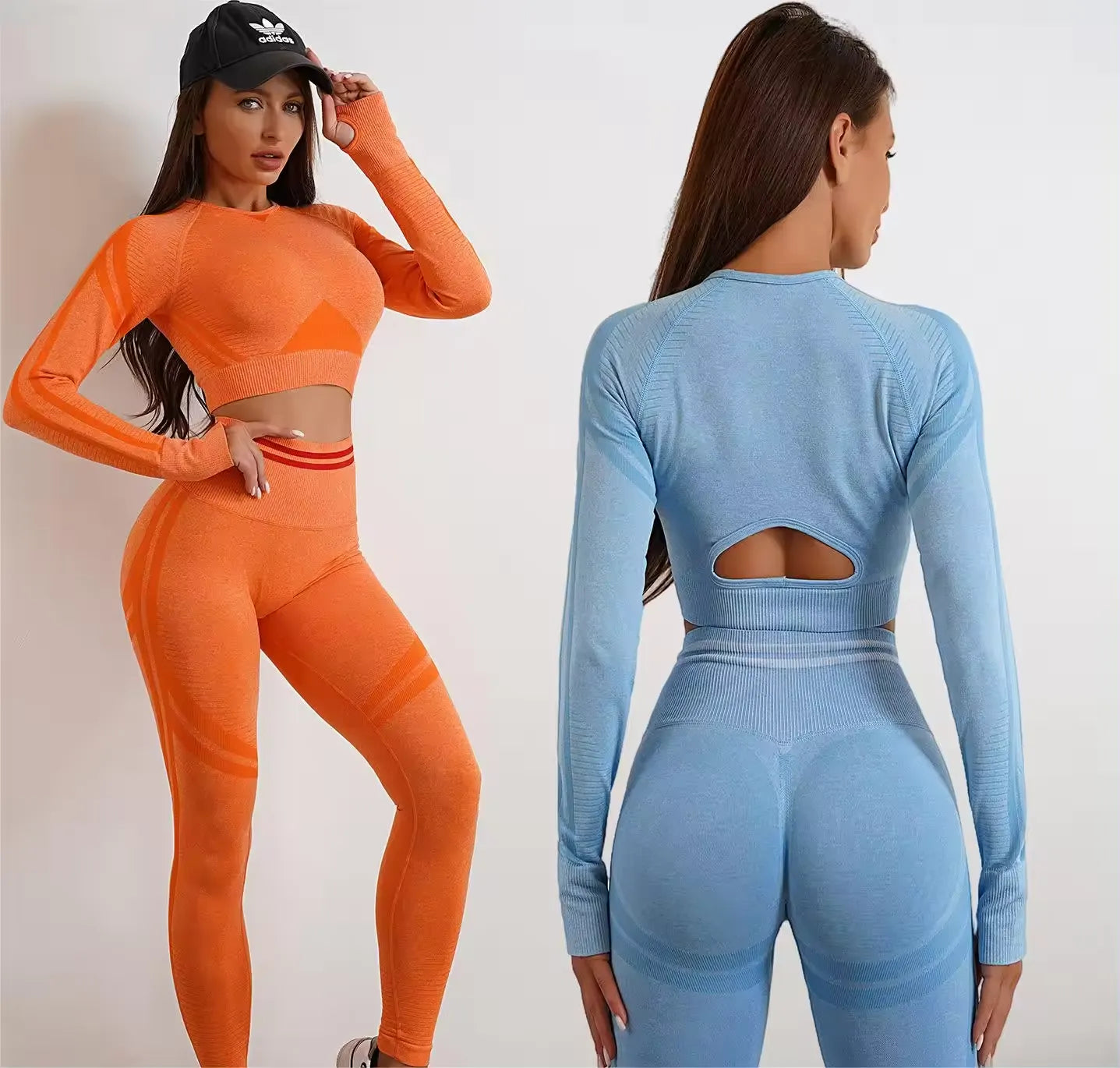 Hot Selling Breathable Yoga Fitness Shirts and Tops Running Gym Athletic Seamless Yoga Push Up Leggings Yoga Wear Crop Tops