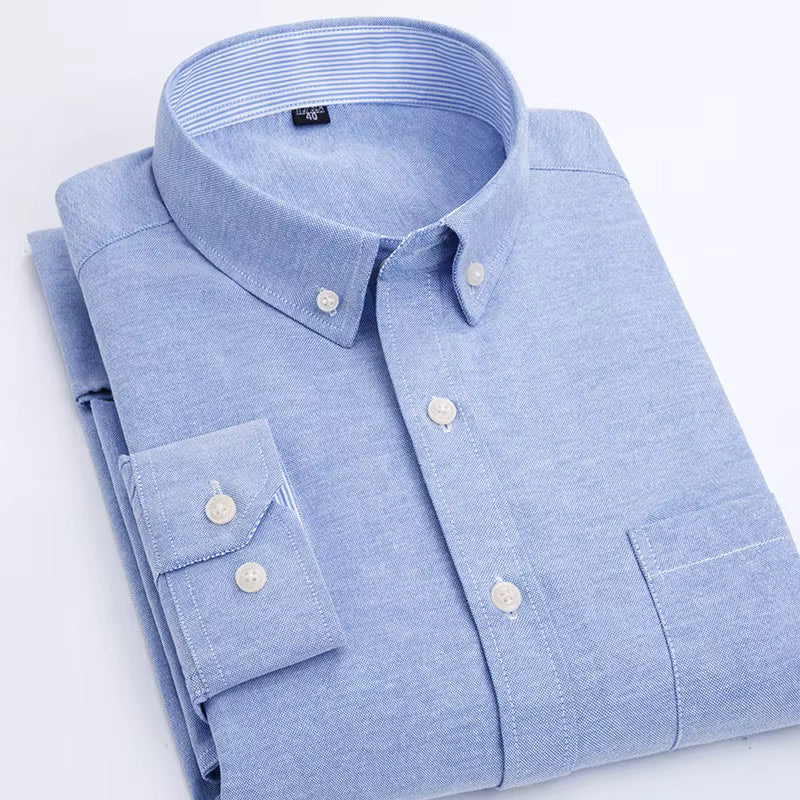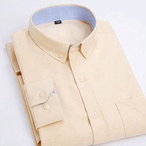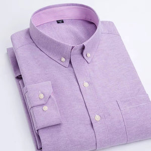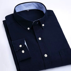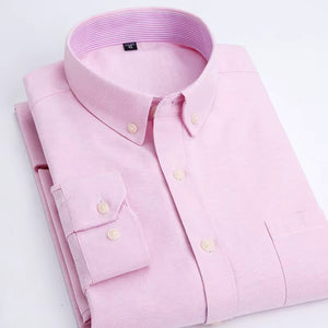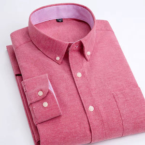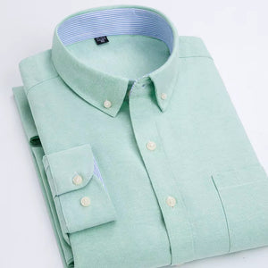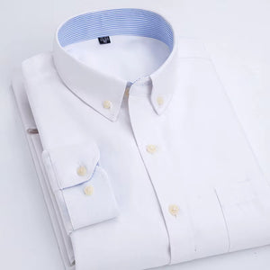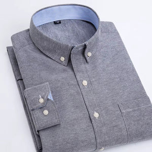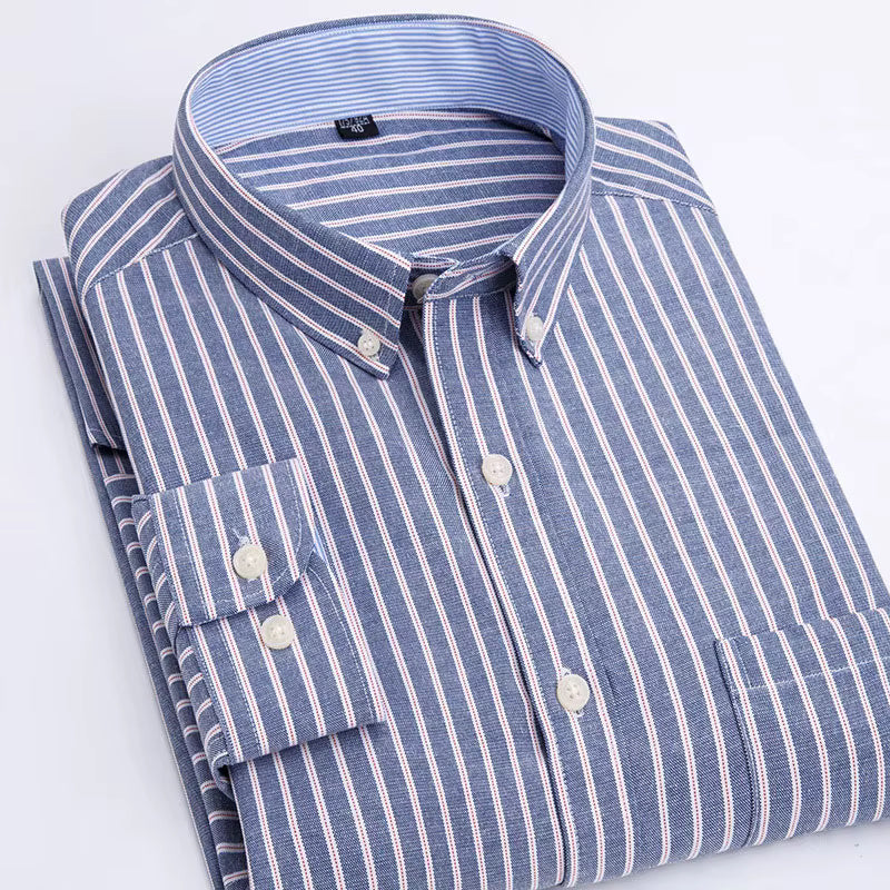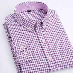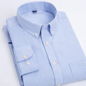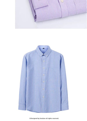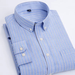 Oxford Men's Plaid Long Sleeve Shirt Casual Striped Shirt Men's White Top Camisas De Hombre