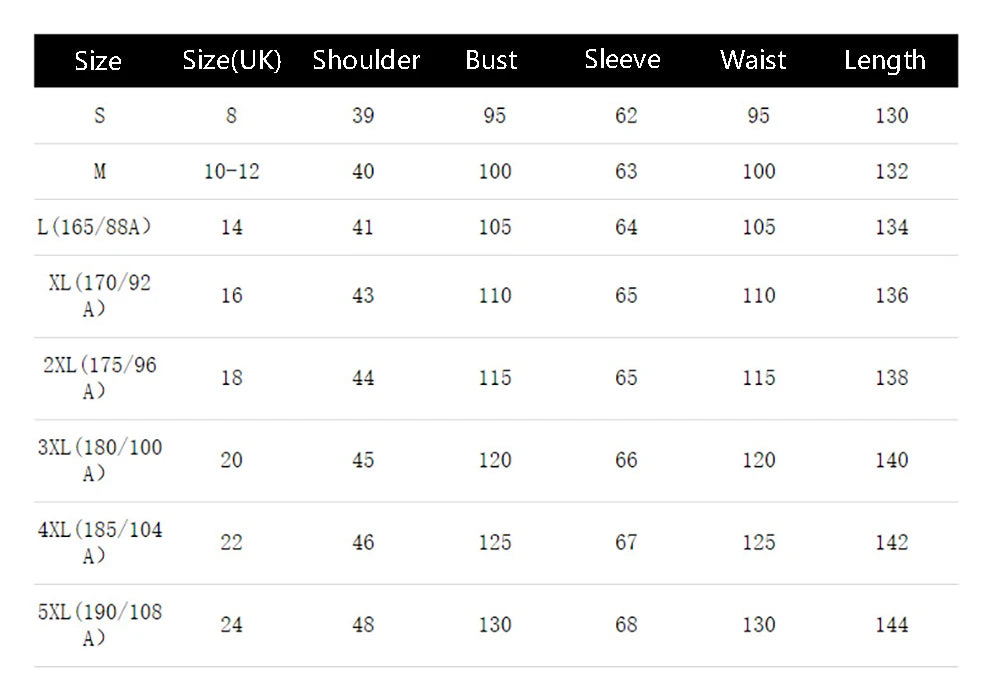 S, M, L, XL, 2XL, 3XL, 4XL, 5XL |