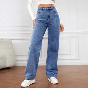 Step out in style with these wide-leg jeans, crafted from 100% cotton for a comfortable fit that moves with you. With a mid-rise waist and a straight fit, they offer a classic yet vintage look perfect for any casual outing. The washed medium color gives them a worn-in, lived-in feel, while the wide-leg cut adds a relaxed, effortless touch.