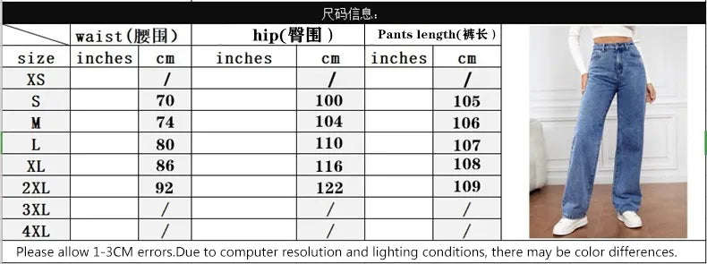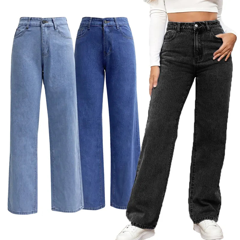 Women Jeans Straight Leg High Waist Blue Washed Cowboy Denim Pants Vintage 90's Streetwear Jeans