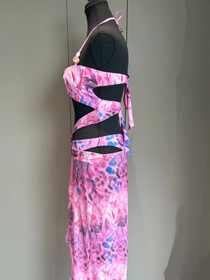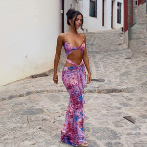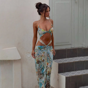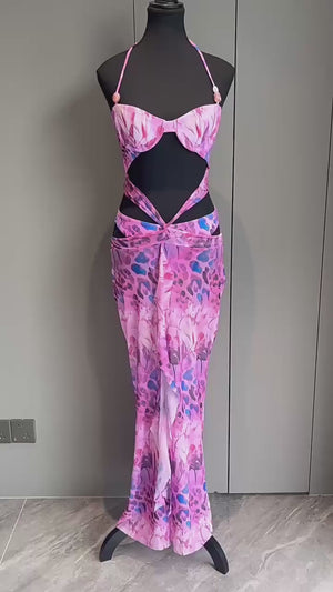 Make waves with this women's 3-piece bikini set, featuring a stylish halter bandeau top, high-waist bottom, and chic cover-up. Crafted from a comfortable spandex and polyester blend, this swimsuit offers a flattering fit and vibrant style. Perfect for beach getaways, pool parties, or lounging by the water, it ensures confidence and versatility.