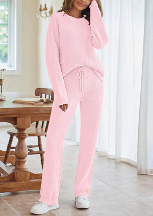 Cozy up in this women’s long-sleeve 2-piece set, crafted for warmth and style in solid color. Ideal for chilly fall and winter days, its thick, knitted fabric ensures lasting comfort and effortless versatility.