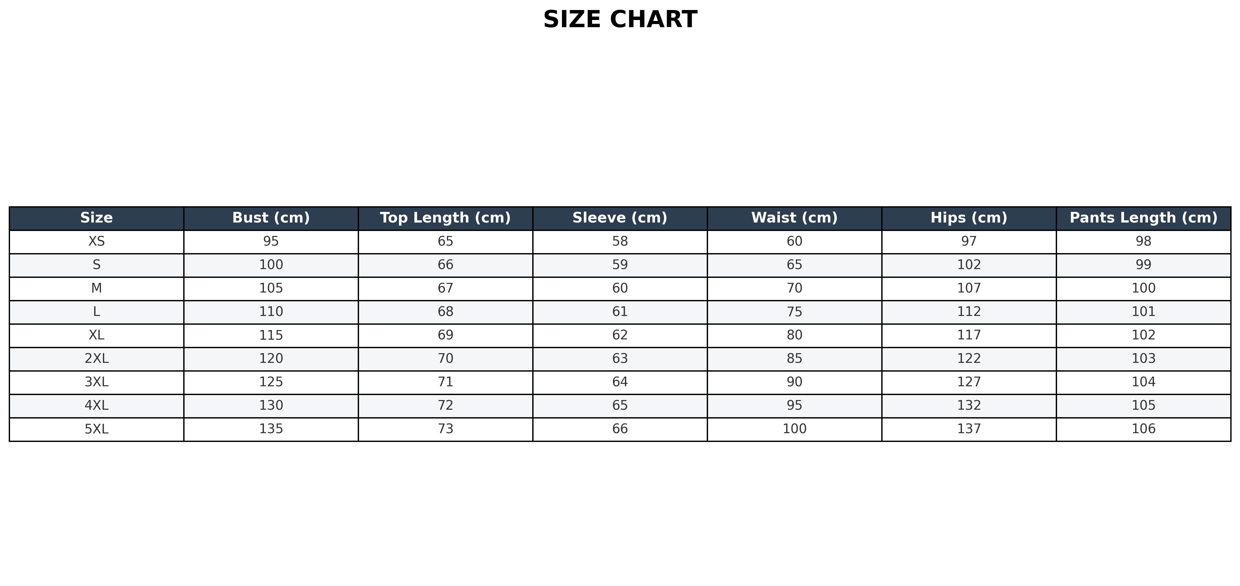 S, M, L, XL, 2XL, 3XL, 4XL, 5XL |