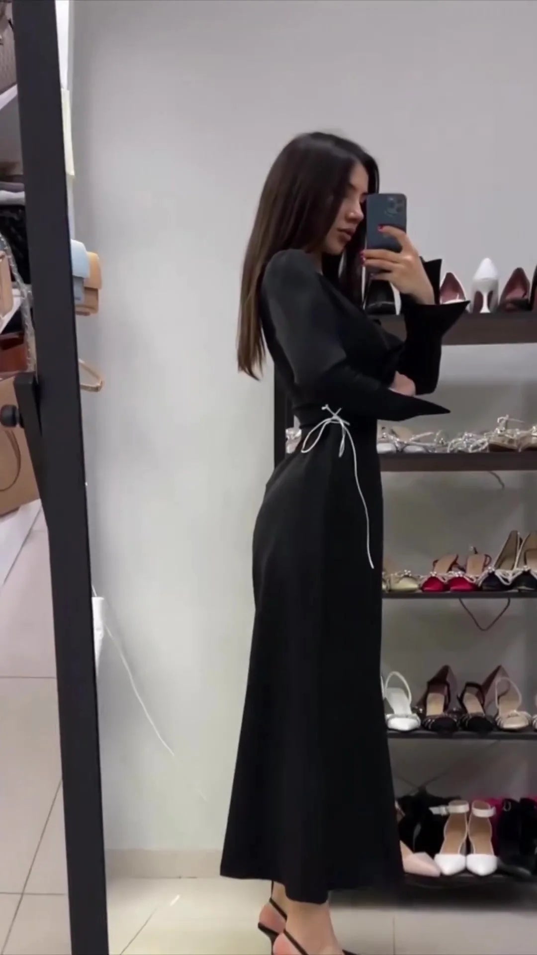 Women’s Elegant Black Long Sleeve Maxi Dress