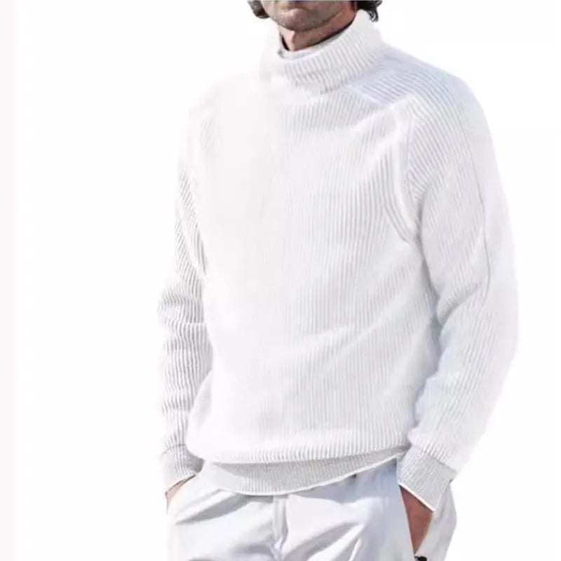 The full-length sleeves and classic turtleneck design provide timeless style, while the embossed knit texture adds a subtle, sophisticated touch to the solid-color aesthetic. Perfect for men seeking a versatile layer that balances comfort and durability, this sweater effortlessly elevates any winter wardrobe. Stay warm and stylish all season long with this must-have piece.