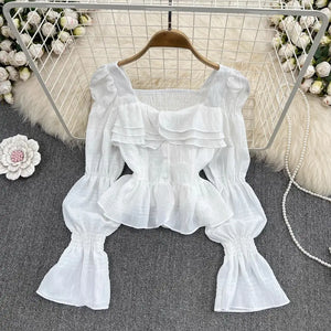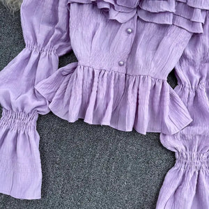 Ruffled Flared Sleeve Top