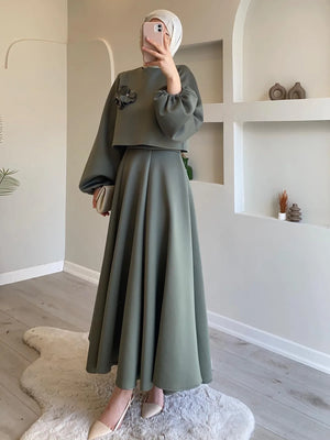 Flower Lantern Sleeve Loose Dress Women's Set Two Piece Set for autumn season