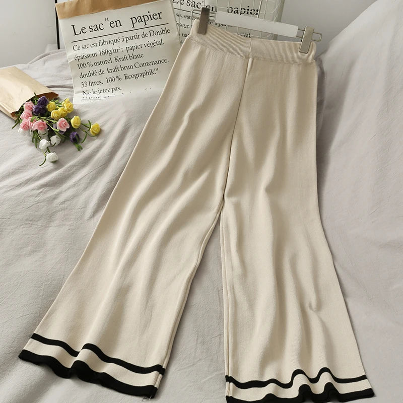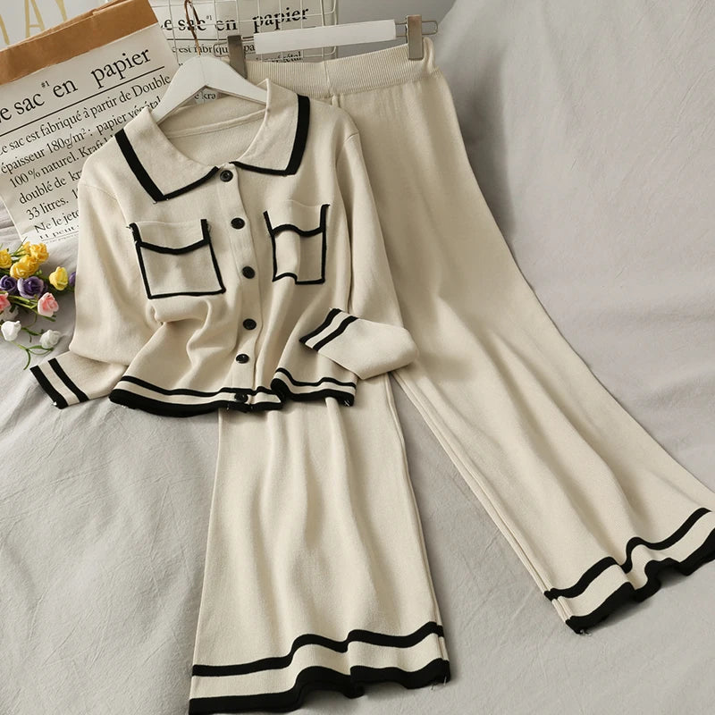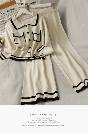 Long-sleeved Sweater Autumn High-waisted Slim Drape Wide-leg Pants Women's Set for winter