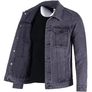 Stay cool and stylish with this men’s casual denim jacket, featuring functional pockets and button details. Perfect for fall and winter, its breathable, washable fabric ensures effortless comfort and durability.