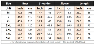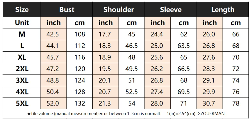 M, L, XL, 2XL, 3XL, 4XL, 5XL |