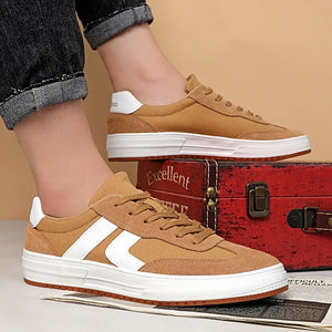 Step up your everyday style with these men’s lace-up casual sneakers, designed for comfort, durability, and modern flair. Crafted with a breathable mesh upper and a soft cotton fabric lining, these shoes keep your feet cool and comfortable through all seasons. The lightweight EVA midsole with a height-increasing design adds subtle lift and all-day support, while the waterproof, anti-slippery TPR outsole ensures reliable traction on any surface, from city streets to outdoor trails.