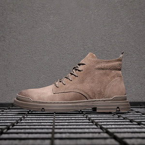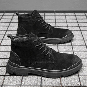 Stride through fall and winter with these men’s leather high top cargo boots, blending rugged style with cozy comfort. Crafted from premium cow suede with a plush lining, these lightweight boots offer durability and warmth, perfect for casual outings or chilly adventures.
