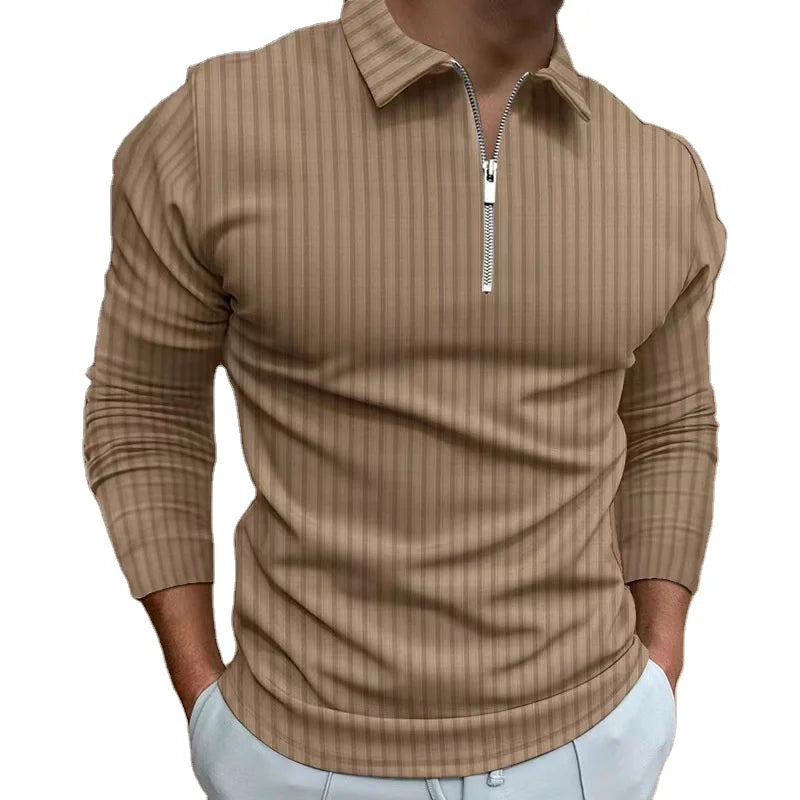 Stay stylish and comfortable this winter with this men’s long-sleeve polo shirt, designed for casual versatility. Crafted from a breathable knitted, nonwoven fabric, this regular-length shirt features a bold striped pattern and a sleek zipper closure for a modern twist. Perfect for layering with jackets or wearing solo, it’s ideal for casual outings or relaxed winter days. Pair with jeans or chinos for a polished, laid-back look that effortlessly blends comfort and style.