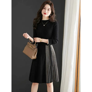 Stay effortlessly stylish and comfortable in this mid-length knitted dress, thoughtfully designed for a flattering plus-size fit. Featuring a classic O-neck, long sleeves, and an elegant A-line silhouette, it delivers both confidence and ease. Crafted with breathable, wrinkle-resistant fabric, this dress keeps you looking polished from morning to evening.