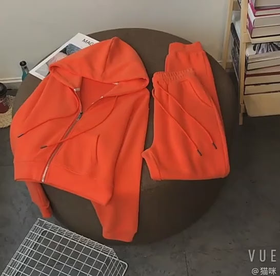 New Short Zipper Sweater Women's Suit sport set for winter season