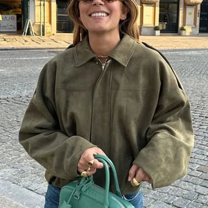 Whether you’re heading out for a weekend stroll or dressing up for a casual night out, this solid-color bomber jacket brings effortless sophistication to any outfit.