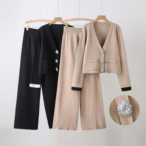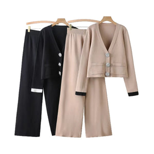 Women’s Chic Knit Two-Piece Set with Wide-Leg Pants