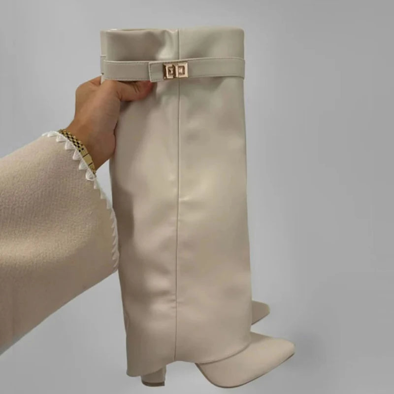 Step boldly into winter with these women’s knee-high booties, featuring a chic chunky heel and pointed toe. Perfect for fall, winter, and spring, their plush lining and anti-odor PU material ensure trendy comfort.