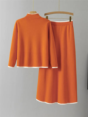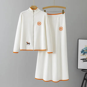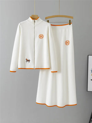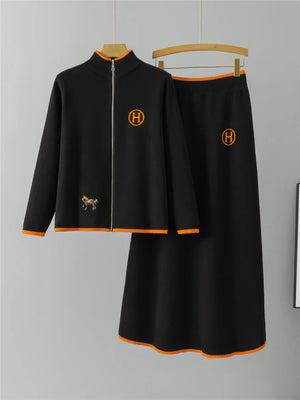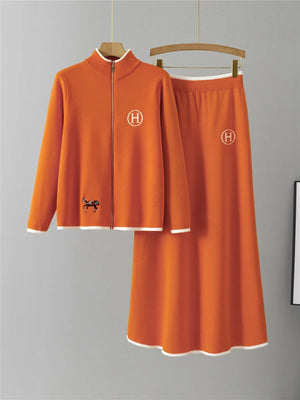 Embrace timeless elegance with this Women’s Knitted Two-Piece Set, a cozy autumn-winter outfit featuring a solid-color long dress and an O-neck sweater with distinctive horse embroidery. Crafted from a premium 460-gram polyester-cotton blend with a knitted texture, this regular-fit set ensures soft, breathable warmth and lasting durability. Its anti-pilling fabric maintains a smooth, polished look, while the minimalist solid dress and embroidered sweater offer versatile styling. Perfect for daily wear, cozy weekends, or casual outings, this set pairs beautifully with coats, scarves, or boots for a chic, seasonal look.