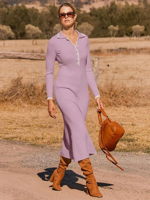 Step into autumn with this women’s long-sleeve knit bodycon dress, designed for elegant comfort and timeless style. Crafted from soft, worsted acrylic fabric, this dress features a turn-down collar and empire waistline, offering a flattering, vintage-inspired silhouette. The anti-wrinkle, eco-friendly, and washable material ensures lasting wear with minimal upkeep, perfect for busy days or evening outings. Its solid-color design and full-length sleeves make it a versatile staple for cooler weather, pairing effortlessly with boots or heels.