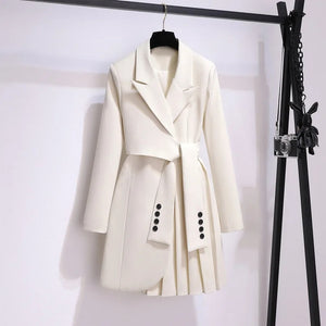 Elegant A-Line Design: V-neck lapel with button details for a chic, professional look.