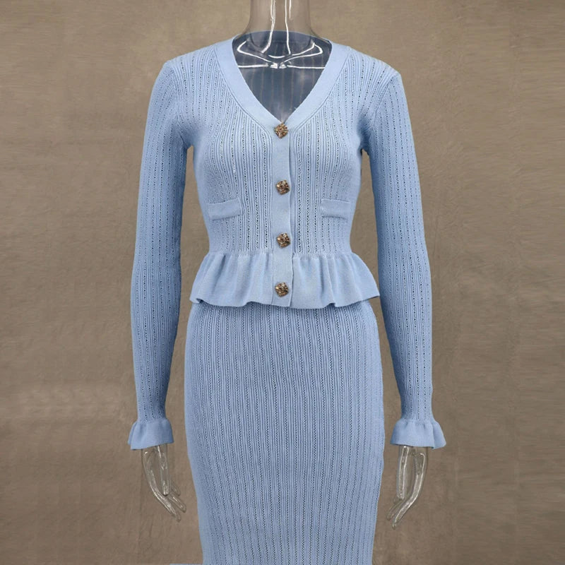 Embrace elegant winter style with this women’s two-piece maxi dress set, featuring a V-neck and England-inspired design. Its anti-wrinkle spandex-polyester blend ensures a comfortable, polished look for chilly days.