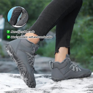 Navigate snowy streets and rugged trails with ease in these Unisex Waterproof Hiking Snow Boots, crafted for style and function across winter, spring, and autumn. The velvet microfiber and waterproof nylon upper keeps feet dry, while the EVA lining ensures cozy warmth and a barefoot-like feel for natural comfort. With a durable rubber outsole and midsole, these boots provide reliable traction on icy sidewalks or forest paths, making them perfect for urban commutes or weekend adventures.
