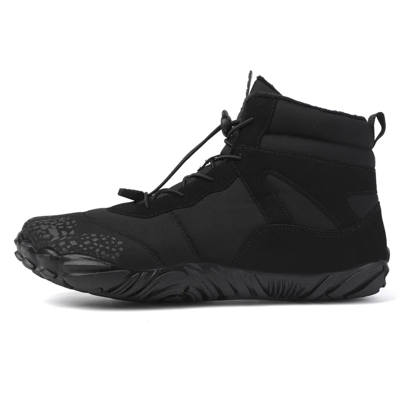 Step into adventure with these Winter Unisex Hiking Boots, designed for those who crave freedom and protection on every trail. Featuring a barefoot-inspired high-top silhouette with velvet microfiber and waterproof nylon upper, these boots offer a lightweight, breathable fit that feels like walking on air—perfect for winter, spring, or autumn explorations. The rubber outsole and midsole provide superior grip and cushioning, while the EVA lining ensures all-day comfort and warmth without bulk.