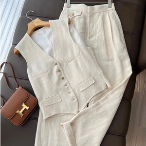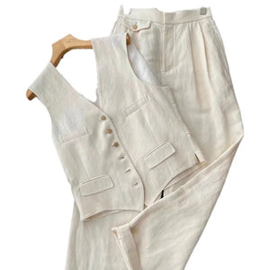 Clean cuts meet chill vibes. This women's two-piece set features a sleeveless O-neck vest paired with flowy wide-leg pants for that effortlessly polished look. Lightweight and breathable—perfect for staying cool and looking sharp.