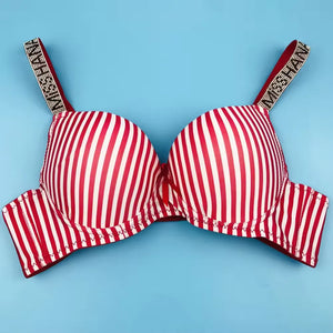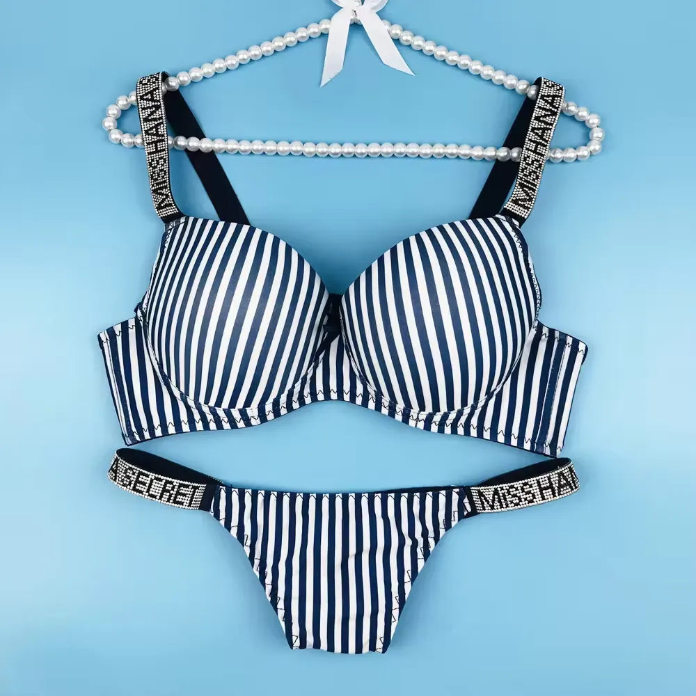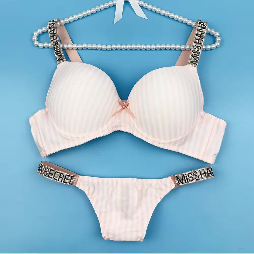 Sexy push up underwear rhinestone shoulder strap steel ring bra gathered big chest set panty