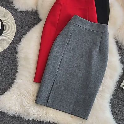 The package hip cut flatters your figure with a tailored, confident look, while the zip closure ensures a secure, smooth fit. Perfect for pairing with blouses, turtlenecks, or blazers, this versatile skirt brings sophistication to both professional and casual settings.