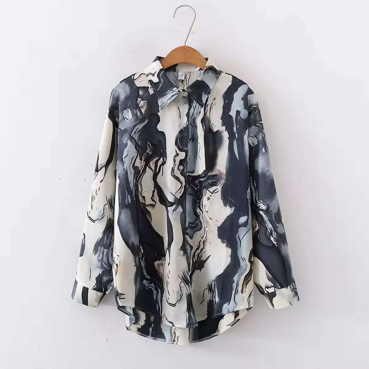 New Floral Print Loose Lapel Long-Sleeved Fashion Shirt