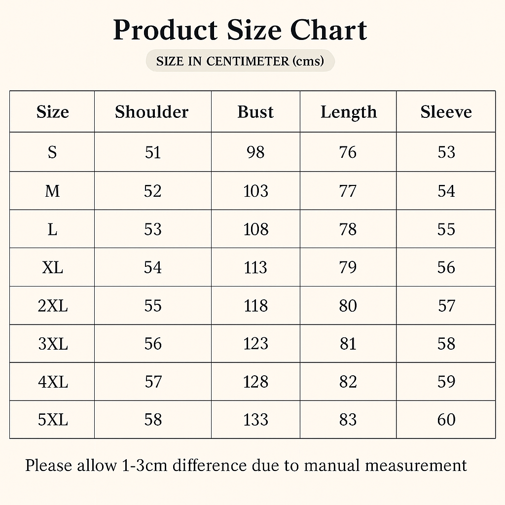S, M, L, XL, 2XL, 3XL, 4XL, 5XL
